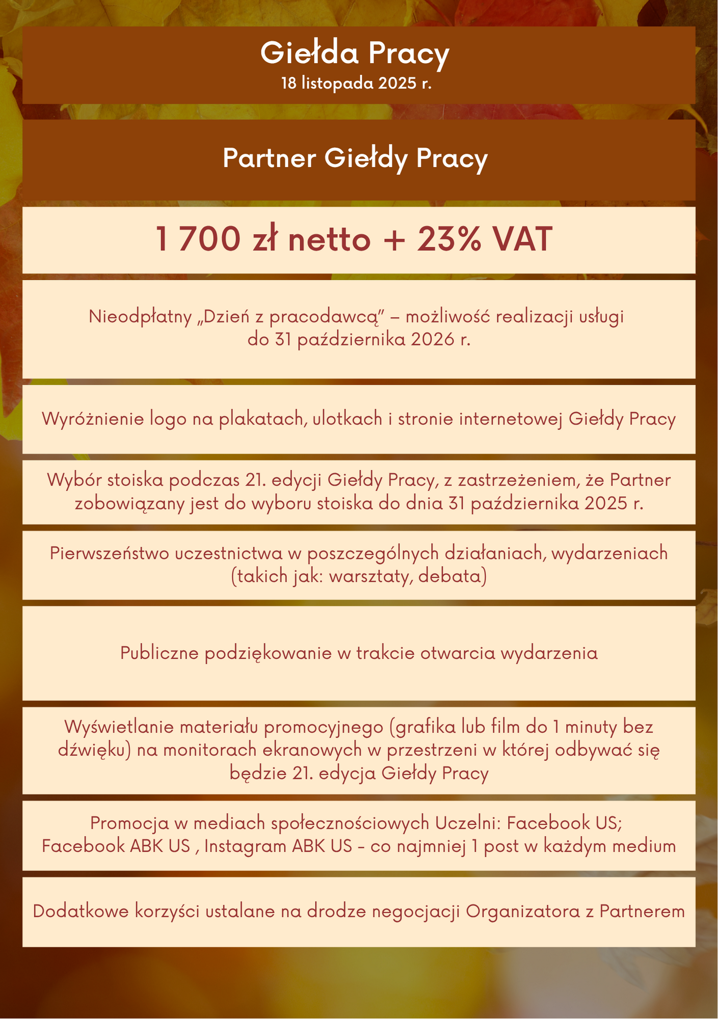 Dodatkowo w ramach wydarzenia możecie Państwo zostać Partnerem 21. edycji Giełdy Pracy: