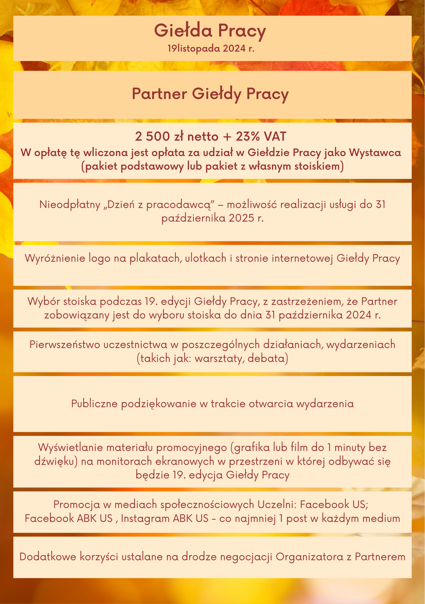 W ramach wydarzenia możecie Państwo zostać Partnerem 19. edycji Giełdy Pracy.